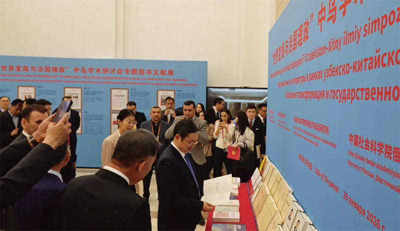 当地时间1月29日,“世界变局与治国理政”中乌学术研讨会专题图书文献展在乌兹别克斯坦首都塔什干举办。作为中乌学术研讨会的重要部分,此次展览系统呈现了习近平总书记系列重要著作与论述、习近平新时代中国特色社会主义思想研究专著、党的二十届四中全会相关文献等丰富资料,并特别陈列了记录中乌友好交往历程的关键史料。