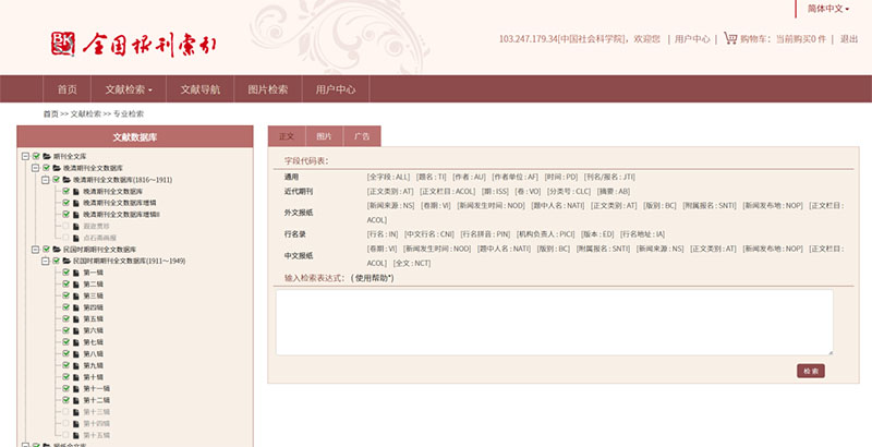 晚清期刊全文数据库,收录了1816年至1911年的600余种期刊,比如《东西洋考每月统记传》《六合丛谈》《万国公报》《时务报》等重要期刊,反映了当时的政治、经济、教育、文化、科技、宗教等各方面的内容。用户可从标题、作者、刊名等途径对60万余篇文章进行检索并浏览、下载全文。现开通晚清期刊全文数据库第2-3期。